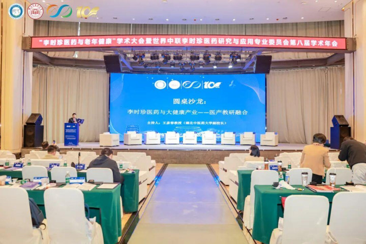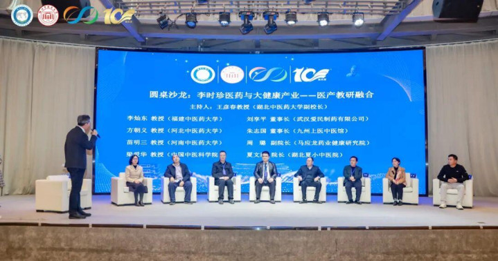 在由湖北中医药大学副校长王彦春教会主捏,围绕“李时珍医药与大健康产业——医产教研会通”主题举办的圆桌沙龙(会议)中,夏文沙院长与大会特邀岐黄学者、福建中医药大学李灿东教会,岐黄学者、河北中医药大学副校长方朝义教会,岐黄学者、河南中医药大学苗明三教会,岐黄学者、中国中医科学院中药接头所梁爱华接头员等众人教会,就中医药文化与身手传承、后果滚动、校企互助模式立异、老年健康产业东谈主才培养等要害议题伸开潜入研讨,学界与业界代表皆聚,共话互助、共谋发展。