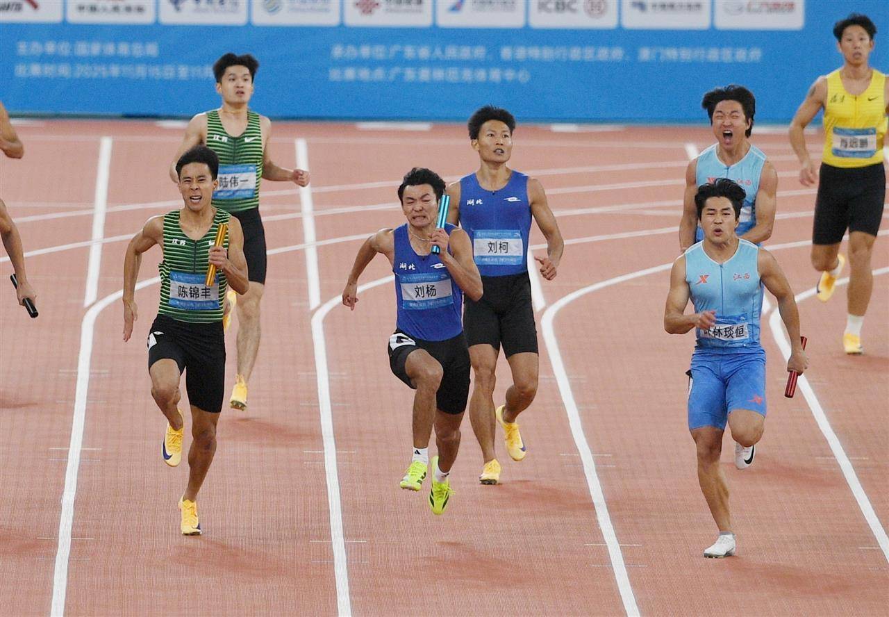 男人4×100米戮力决赛在女子4×100米戮力决赛后进行,湖北男队登场时,湖北女队已斩获冠军。男人百米戮力的决赛亦然星光灿艳,由“新科百米飞人”李泽洋领衔,李孟源、刘柯、刘杨构成的湖北队,与江西队、江苏队伸开热烈角逐。36岁的男人百米亚洲记载保握者、广东队选手苏炳添的谢幕之战,更为这场比赛增添了独特道理。
